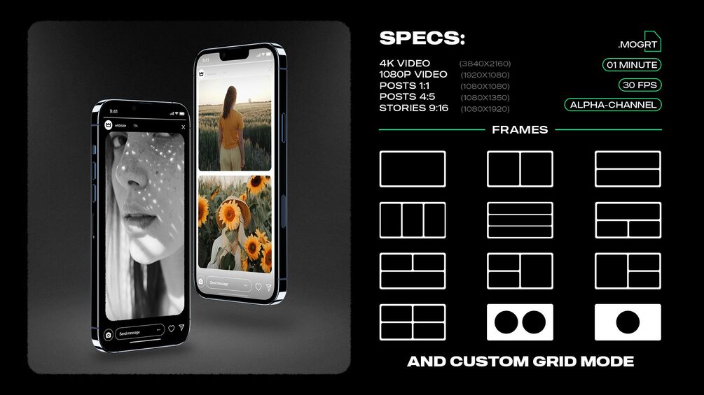 This is a .MOGRT template to add film frame overlays